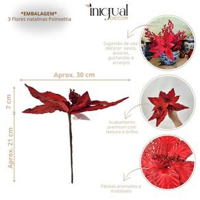 Kit Poinsettia Vermelha Bico De Papagaio 30cm Enfeite Natal Flor Poinsettia Artificial Vermelha com Glitter Inigual Decor Adicione um toque de cor vibrante e brilho festivo à sua decoração com esta linda Flor Poinsettia Artificial Vermelha da Inigual Decor. A poinsettia é um símbolo clássico do Natal, e esta versão artificial captura toda a sua beleza com um acabamento em glitter que traz um charme extra e um brilho especial para qualquer ambiente. Feita com uma combinação de metal, plástico e poliéster, esta flor é leve, durável e perfeita para diversas aplicações decorativas. Seu caule flexível permite que seja facilmente inserida em arranjos florais, guirlandas, árvores de Natal ou Utilizado para criar pontos de destaque em sua mesa ou lareira. É a peça ideal para quem busca uma decoração que une praticidade e a tradição natalina de forma elegante. Por Que Escolher a Poinsettia Inigual Decor Design Festivo: A cor vermelha intensa e o acabamento em glitter criam um visual clássico e luxuoso. Material Resistente: A combinação de metal, plástico e poliéster garante a durabilidade da peça. Fácil de Usar: O caule flexível permite que a flor seja adaptada para diferentes tipos de decoração. Símbolo de Natal: A poinsettia é um ícone natalino que traz o espírito da época para sua casa. Especificações do Produto: Material: Metal, Plástico e Poliéster Cor: Vermelha Conteúdo da Embalagem: 3 Flores Poinsettia Artificial Altura Total: 28,0 cm Altura do Caule: 21,0 cm Diâmetro da Flor Aberta: 30,0 cm Peso Aproximado: 35 g Observação: As imagens são ilustrativas. Itens decorativos adicionais exibidos nas fotos não acompanham o produto. Vem decorar, seja INIGUAL Marca: Não Informado Ean: 7890964131901