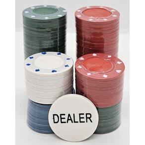O Kit contém 100 e 1 DEALER fichas de Poker coloridas: