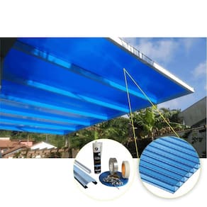 Kit Policarbonato Alveolar Azul 4mm - 10,00m x 6,00m - Perfis Naturais - O que contém este kit: