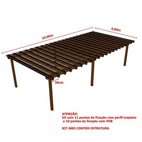 10,00m de largura x 4,00m de avanço (sentido da caída da água)21 caibros/travessas (espaçamento de 50cm)Considerando 11pontos de fixação