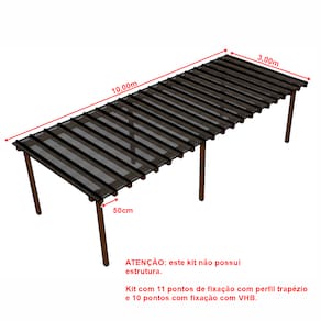 Kit Policarbonato Alveolar Fume 4mm - 10,00m x 3,00m - Perfis Naturais - O que contém este kit: