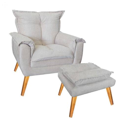 POLTRONA E PUFF JADE - Ahazzo Móveis Ideal para agregar elegância e sofisticação ao seu ambiente de forma prática e eficaz. CARACTERÍSTICAS POLTRONA: - Largura: 77 cm; - Altura: 93 cm; - Profundidade: 72 cm; - Produto estofado; - Espuma D-28; - Produzido em Madeira de Eucalipto e MDF; - Pés em Madeira de Eucalipto; - Enviamos para todo Brasil, basta calcular o seu CEP. CARACTERÍSTICAS PUFF: - Largura: 52 cm; - Altura: 43 cm; - Profundidade: 48 cm; - Produto estofado; - Espuma D-28; - Produzido em Madeira de Eucalipto e MDF; - Pés em Madeira de Eucalipto; - Enviamos para todo Brasil, basta calcular o seu CEP. OBSERVAÇÕES: - Limpar com flanela limpa e seca. Não molhar o móvel e não expor em lugar úmido ou próximo de fontes de calor. Não usar produtos abrasivos; - As imagens ambientadas são meramente ilustrativas e podem apresentar itens que não compõe o produto; - Objetos decorativos que aparecem na foto não acompanham o produto; - As cores do produto podem variar de acordo com o monitor, a iluminação do ambiente, ou sua percepção visual; - Confira as dimensões antes da compra e certifique-se de que o produto passará por elevadores, portas e corredores, já que nossa entrega não inclui a subida de lances de escada, ou o lançamento de produtos; - Ao receber seus produtos, verifique no ato do recebimento qualquer dano na embalagem. Caso tenha alguma avaria, favor não assinar o comprovante de recebimento (A transportadora tem obrigação de esperar a conferência); - Produto para uso residencial em ambiente interno, não devendo ficar exposto diretamente ao sol, calor e umidades excessivas.