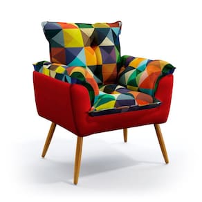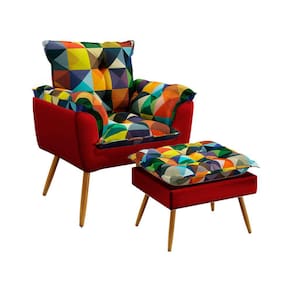 Kit Poltrona Beta e Puff Lunar F-015 Sued Estampado Colorido com Veludo Aradecor - Vermelho