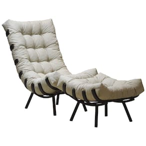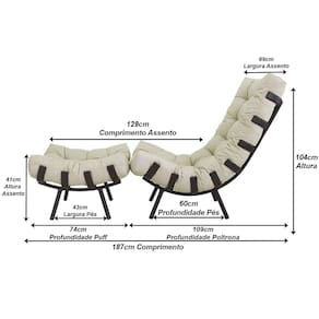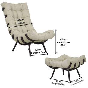 Kit Poltrona Costela + Puff Almofada Decorativo Alumínio - Marrom