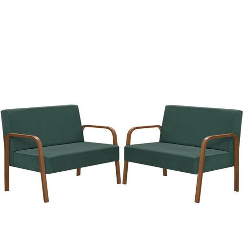 Kit Poltrona Decorativa 2 Namoradeiras de 2 Lugares Jade Braço Madeira D Salla Suede - Verde