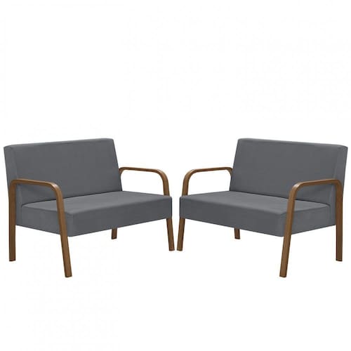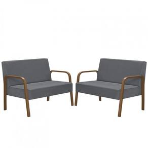 Kit Poltrona Decorativa 2 Namoradeiras Jade Braço Madeira D Salla Suede - Grafite