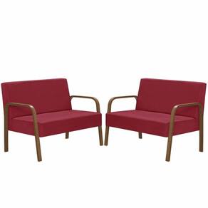 Kit Poltrona Decorativa 2 Namoradeiras Luna Braço Madeira D Salla Suede - Vermelho