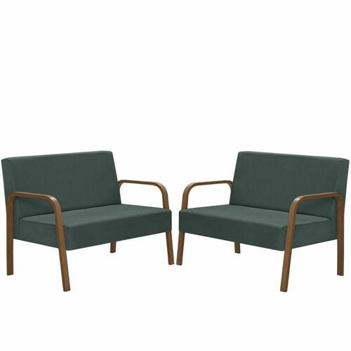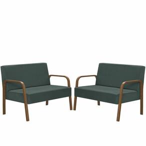 Kit Poltrona Decorativa 2 Namoradeiras Luna Braço Madeira D Salla Suede