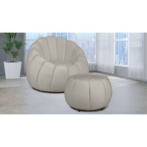 Kit Poltrona Decorativa C/ Puff Concha Veludo Marfim - Londrilar - Bege Claro