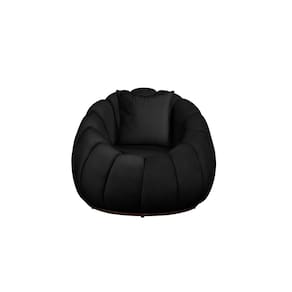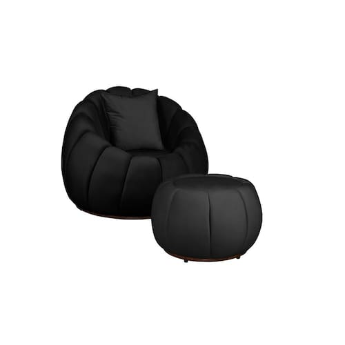Kit Poltrona Decorativa C/Puff e Almofada Concha Veludo Preto - Montanaris Decor
