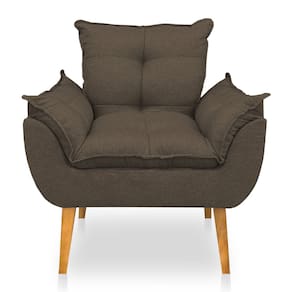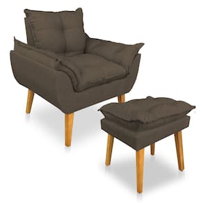 Kit Poltrona Decorativa e Puff Opala Luxo Linho Marrom Dal Poz Estofados