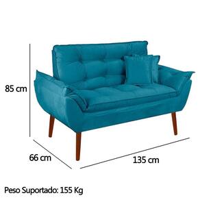 Kit Poltrona Decorativa Namoradeira 2 Puffs Opala e 2 Almofadas Suede Azul Claro - LM Decor