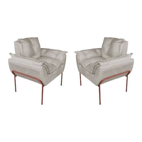 Kit Poltrona Decorativa para Consultório Base Cobre Suede - Vallisa Decor - Bege