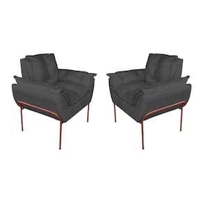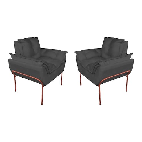 Kit Poltrona Decorativa Suede Cinza Base Metálica Cobre - Vallisa Decor