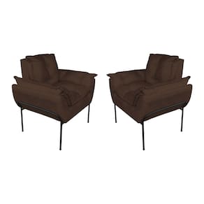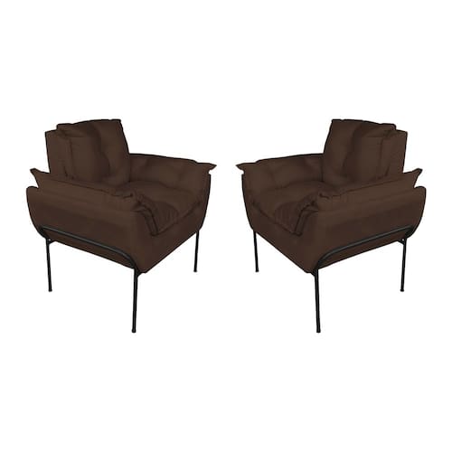 Kit Poltrona Decorativa Suede Marrom Base Preta - Vallisa Decor
