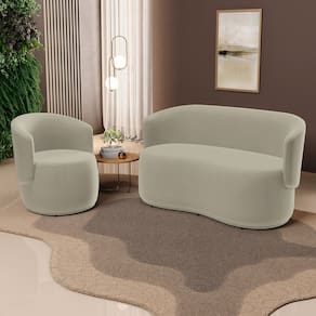 Kit Poltrona e Namoradeira Aisha Orgânica Suede Bege - Abmaza