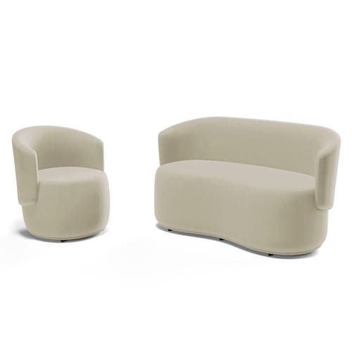 Kit Poltrona E Namoradeira Aisha Orgânica Suede Bege Claro - Desk Design