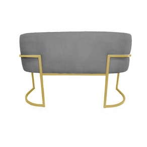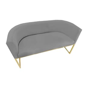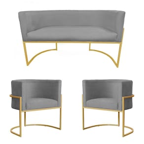 Kit Poltrona e Namoradeira Luana Suede Cinza Base Metálica Dourada - Vallisa Decor