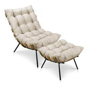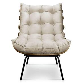 Kit Poltrona e Puff Costela Suede Base Metal Drossi Bege