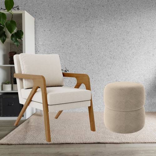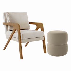 Poltrona e Puff moderna para sala, quarto ou escritório Estrutura em madeira maciça, mais durável e resistente Conforto premium com espuma D23 SOFT Design clean e sofisticado, combina com qualquer ambiente Suporta até 120 kg Fabricada em Linho ou Bouclé de alta qualidade
