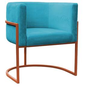 Kit Poltrona e Puff Luana Base Bronze Veludo Azul Turquesa - Montanaris Decor