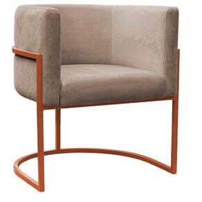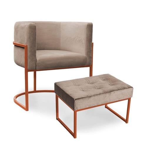Kit Poltrona e Puff Luana Base Bronze Veludo Cappuccino - Montanaris Decor - Marrom Cacau