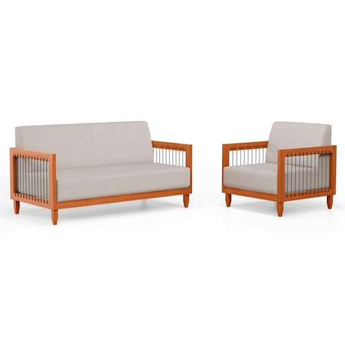 Que tal o Conjunto de Poltrona e Sofá Varanda Samoa Madeira Maciça com Cordas Náutica?