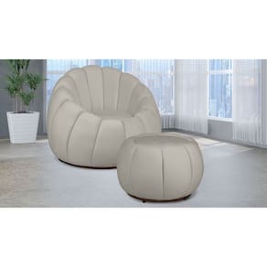 Kit Poltrona Giratória Concha C/ Puff Veludo Marfim - Londrilar - Bege Claro