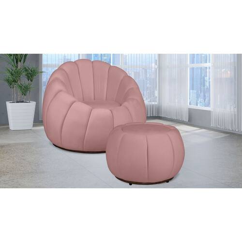 Kit Poltrona Giratória Concha C/ Puff Veludo Rosa - Londrilar