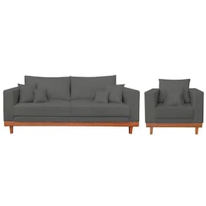 Você receberá 2 volumes, ou seja, um Kit Poltrona Living + Sofá 3 Lugares com Base Madeira Suede