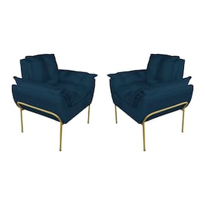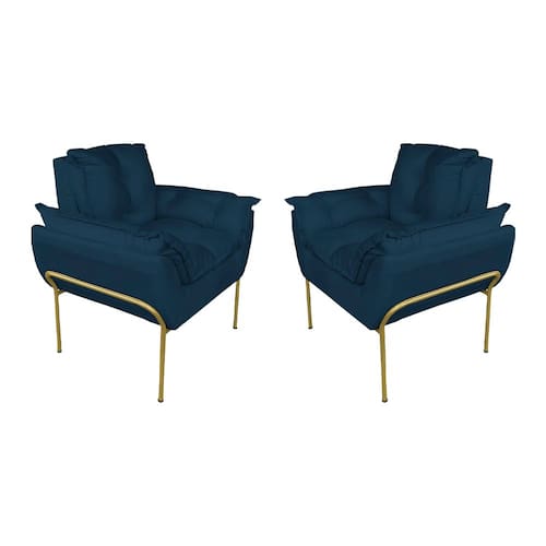 Kit Poltrona Moderna Base Dourada Suede Azul Marinho - Vallisa Decor