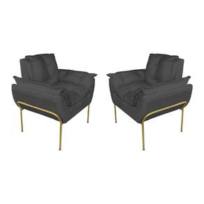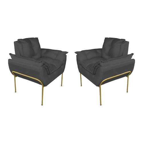 Kit Poltrona Moderna Base Dourada Suede Cinza - Vallisa Decor