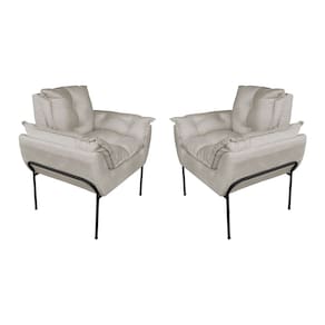 Kit Poltrona Moderna Base Preta Suede Bege - Vallisa Decor