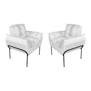 Kit Poltrona Moderna Base Preta Suede Branco - Vallisa Decor