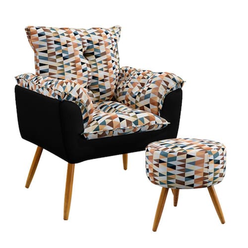 Kit Poltrona Opala e Puff Solar F-014 Sued Estampado Bege com Sued Aradecor - Preto