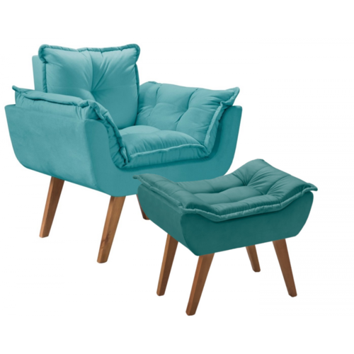 Kit Poltrona Opalla Com Puff Moveis D Salla - Azul Turquesa