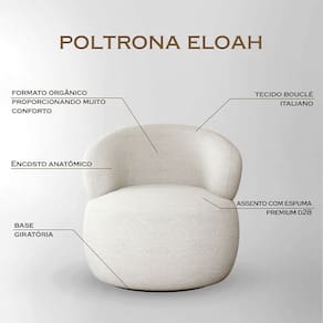 Transforme seu ambiente em um verdadeiro refúgio de conforto e estilo com a Poltrona Eloah com Puff Ello. Desenvolvido para quem valoriza bem-estar, design contemporâneo e móveis de alto padrão, este conjunto se destaca pelas curvas envolventes, visual elegante e acabamento premium em tecido bouclé italiano. A poltrona proporciona aconchego absoluto para relaxar, enquanto o puff complementa a experiência com versatilidade, podendo ser utilizado como apoio para os pés ou assento auxiliar. Ideal para sala de estar, quarto ou cantinho de leitura, é a escolha perfeita para elevar a decoração com personalidade, funcionalidade e sofisticação.