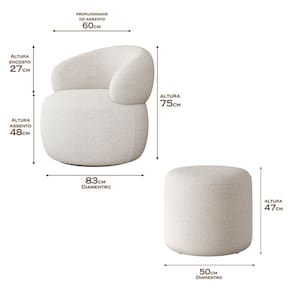 Puff: 47 cm (A) x 50 cm (Diâmetro)