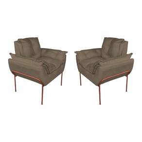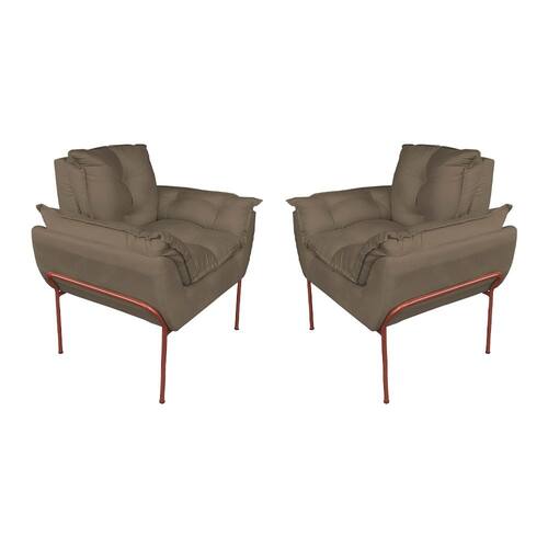 Kit Poltrona Recepção Suede Cappucino Base Cobre - Vallisa Decor - Preto