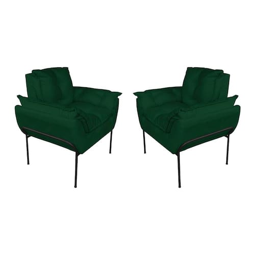 Kit Poltrona Recepção Suede Verde Base Preta - Vallisa Decor