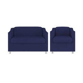 Kit Poltrona Tilla Recepção + Namoradeira Sala, Quarto Suede azul Marinho