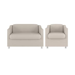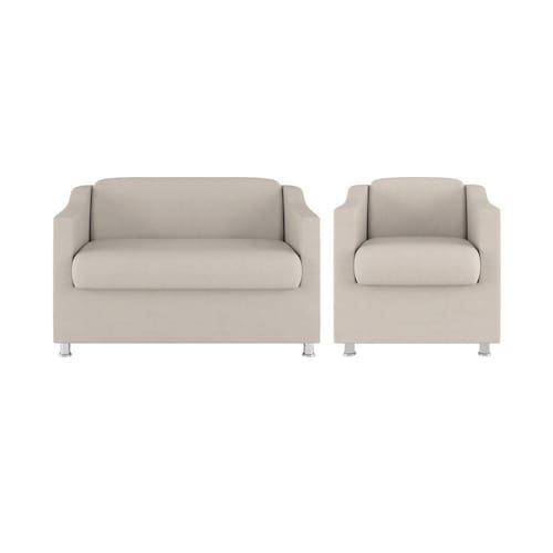 Kit Poltrona Tilla Recepção + Namoradeira Sala, Quarto Suede bege