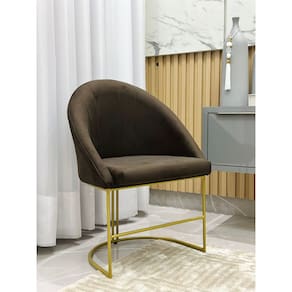 Kit Poltronas Decorativa Lua Sala de Jantar Base Industrial Dourada A Poltrona Lua adiciona modernidade e elegância à sua casa, tornando o ambiente mais aconchegante. Sua estrutura é de madeira de eucalipto proveniente de reflorestamento e inclui chapas de MDF, com uma base industrial dourada que proporciona conforto.