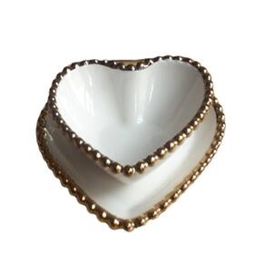Organize suas joias e pequenos objetos de maneira prática e charmosa com o Kit Porta Bijuterias Joia Tigela de Cerâmica Coração 2 Peças.