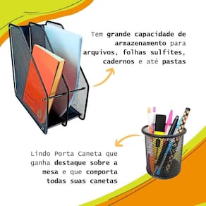 Para quem gosta de ter tudo sempre à mão, com agilidade e praticidade. Kit de organizadores de escritório é ideal para você. Com eles, você vai evitar a perda de tempo procurando os itens de que precisa e que usa com frequência. Tudo estará a sua mão.