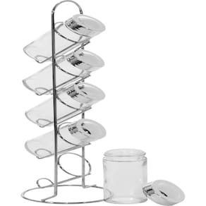 - kit porta condimentos inox com 5 potes vidro inclusos deixe sua cozinha com um toque requintado, moderno e organizado. Com nosso porta condimentos você consegue armazenar uma diversidade de temperos E condimentos, ficando de fácil acesso na hora do preparo de sua receita, além De ser um acessório lindo para sua cozinha. itens inclusos:1 suporte 5 potes dosadores vidro com tampa informações adicionais; -não nos responsabilizamos pelo Uso incorreto ou instalação inadequada. -imagem ilustrativa. Medidas aproximadas do produto - Comprimento: 40 cm - Altura: 15 cm - Largura: 15 cm - Peso: 2000 g Ean: 7898632184846
