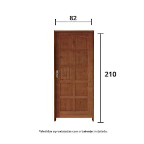 O Kit Porta Pronta de Madeira da Hale é uma excelente escolha para quem deseja autonomia e praticidade, o kit acompanha fechadura, dobradiças, batente e a folha da porta em vários tamanhos as portas são revestidas com chapa de HDF que proporciona beleza e durabilidade. Acompanha Batedor: Não Acompanha Batente: Sim Acompanha Dobradiça: 3 Acompanha Fechadura: Sim Acompanha Ficha Técnica: Sim Acompanha Guarnição: Não Acompanha Manual de Instalação: Sim Acompanha Puxador: Não Acompanha Trinco: Não Altura: 210 cm Ambiente Principal: Sala de Estar codigo_ean: 7899701400096 Complexidade da instalação: Média: pode ser montado por mais de uma pessoa e/ou necessite de maior conhecimento para montagem Cor: Pinus Cor do Batente: Marrom Cor do Produto: Pinus Cor Predominante: Marrom Dimensão da Máquina da Fechadura: 40.0000 Elétrica: Não Escala de Brilho: Fosco Espessura: 3,5 cm Imune à corrosão: Não Indicações de Uso: Preferência por áreas cobertas Informações Complementares: Kit Porta pronta para instalação Isolamento Acústico: Não Itens Inclusos: Folha, batente, dobradiças, fechadura, embalagem e manual. Lado de abertura: Direita Largura: 82 cm Largura do Batente: 11 cm Manual de Montagem e Instalação: https://product-hub-prd.madeiramadeira.com.br/823107/documents/a067675c-2024-42e4-9cb4-a4ba626828f51151934manualdemadeirahale.pdf Material da Dobradiça: Alumínio Material do Batente: Madeira Material do Puxador: Aço Material Principal: Madeira Maciça Necessita Instalação: Não Necessita Montagem: Não Número de Folhas: 01 Origem do Produto: Nacional Peso: 1 kg Possui friso: Não Possui Grade: Não Possui Vidro: Não Preenchimento da Porta: Maciça Quantidade de Folhas: 01 Recomendações de Uso, Manutenção e Limpeza: Realize a limpeza com espanador de pó. Resistência à Maresia: Não Resistência a umidade: Não Tamanho: 210cm x 82cm Tamanho do Produto: 210cm x 82cm Textura da Porta: Almofadada Tipo de Batente: Fixo Tipo de Dobradiça: Simples Tipo de Madeira: Pinus Tipo de Parede: Alvenaria;Drywall;Madeira Tipo de Porta: Abrir Vidro incluso: Não Marca: Hale Esquadrias Ean: 7899701400096