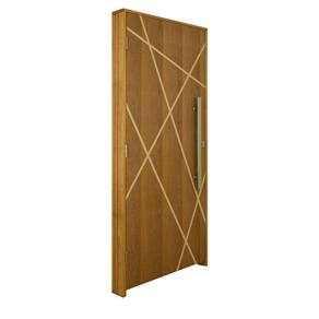 Kit Porta de Madeira Frisada 215x117cm Batente 14cm Fechadura Rolete e Puxador Rodam