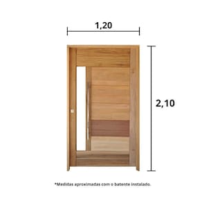 O Kit Porta Pronta de Madeira da Hale é uma excelente escolha para quem deseja autonomia e praticidade, o kit acompanha fechadura, dobradiças, batente e a folha da porta em vários tamanhos as portas são revestidas com chapa de HDF que proporciona beleza e durabilidade. Acabamento do Puxador: Inox Acompanha Batedor: Sim Acompanha Batente: Sim Acompanha Dobradiça: 2 Acompanha Fechadura: Sim Acompanha Ficha Técnica: Sim Acompanha Guarnição: Sim Acompanha Manual de Instalação: Sim Acompanha Puxador: 01 Acompanha Trinco: Não Altura: 210 cm Ambiente Principal: Sala de Estar codigo_ean: 7899701394500 Complexidade da instalação: Baixa: pode ser montado por uma pessoa sozinha Cor: Cedro Cor do Batente: Marrom Cor do Produto: Cedro Cor Predominante: Marrom Dimensão da Máquina da Fechadura: 40.0000 Elétrica: Não Escala de Brilho: Fosco Espessura: 3,5 cm Imune à corrosão: Não Indicações de Uso: Preferência por áreas cobertas Informações Complementares: Kit Porta pronta para instalação Isolamento Acústico: Não Lado de abertura: Direita Largura: 120 cm Largura do Batente: 14 cm Manual de Montagem e Instalação: https://product-hub-prd.madeiramadeira.com.br/829749/documents/aa125f85-ed68-43a6-b281-b9c101dd67b327051138981manualdemadeira.pdf Material da Dobradiça: Alumínio Material do Batente: Madeira Material do Puxador: Aço Material Principal: Madeira Necessita Instalação: Não Necessita Montagem: Não Número de Folhas: 01 Origem do Produto: Nacional Peso: 78,5 kg Possui friso: Não Possui Grade: Não Possui Vidro: Não Preenchimento da Porta: Sarrafeada Quantidade de Folhas: 01 Recomendações de Uso, Manutenção e Limpeza: Realize a limpeza com espanador de pó. Resistência à Maresia: Não Resistência a umidade: Não Tamanho: 210cm x 120cm Textura da Porta: Lisa Tipo de Dobradiça: Pivotante Tipo de Madeira: Cedro Tipo de Parede: Alvenaria;Drywall;Madeira Tipo de Porta: Abrir Vidro incluso: Não Marca: Hale Esquadrias Ean: 7899701394500