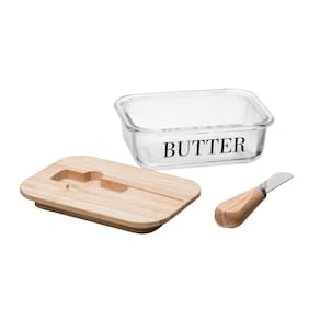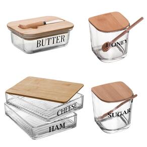 Kit Porta Frios + Manteigueira + Meleira + Açucareiro de Vidro e Bambu Wolff - Itens Inclusos